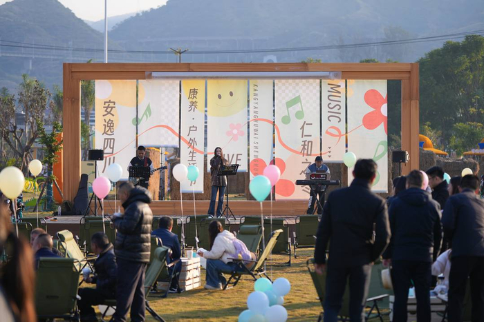 现场乐队演出活动现场,还发布了多条潮玩路线和丰富的文旅活动,为游客解锁今冬“潮玩”新副本。围绕“跟着演艺去旅游”“跟着影视去旅游”,活动推出了两条潮玩路线——一条是汇聚都市活力与人文底蕴的精彩游线,游客可在成都观看文华大奖川剧《梦回东坡》,到眉山青龙老街探访《家里家外》拍摄地,还能在乐山罗目古镇重温电影《罗目的黄昏》的动人场景;另一条是深入川西秘境的光影动感之旅,从雅安雨城半程马拉松到稻城亚丁的浪漫誓言,再到凉山彝家儿女的火热情怀,让游客在旅途中感受四川的多元魅力。