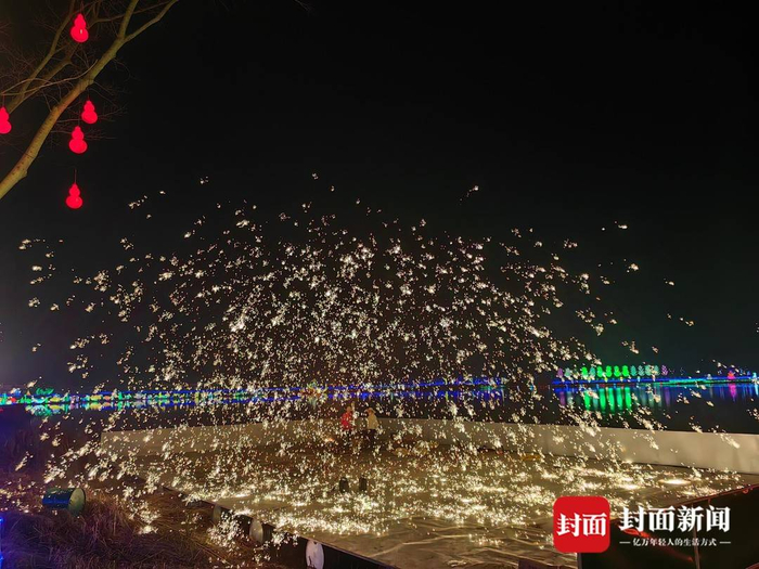 打铁花(摄影:黄晓庆)“2025非遗过大年·内江汉安湖新春灯会”,精心策划非遗打铁花、国潮飞天秀、皇家大马戏以及传统的新春灯会四大核心亮点,以其独特的魅力吸引了众多游客。